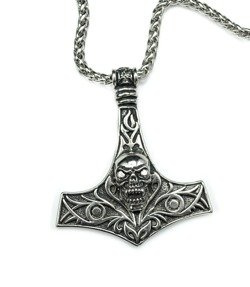 Wisior na łańcuszku Młot Thora/Czaszka