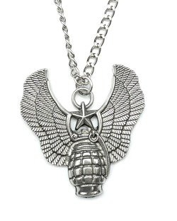 Metalowy wisior na łańcuszku granat ze skrzydłami